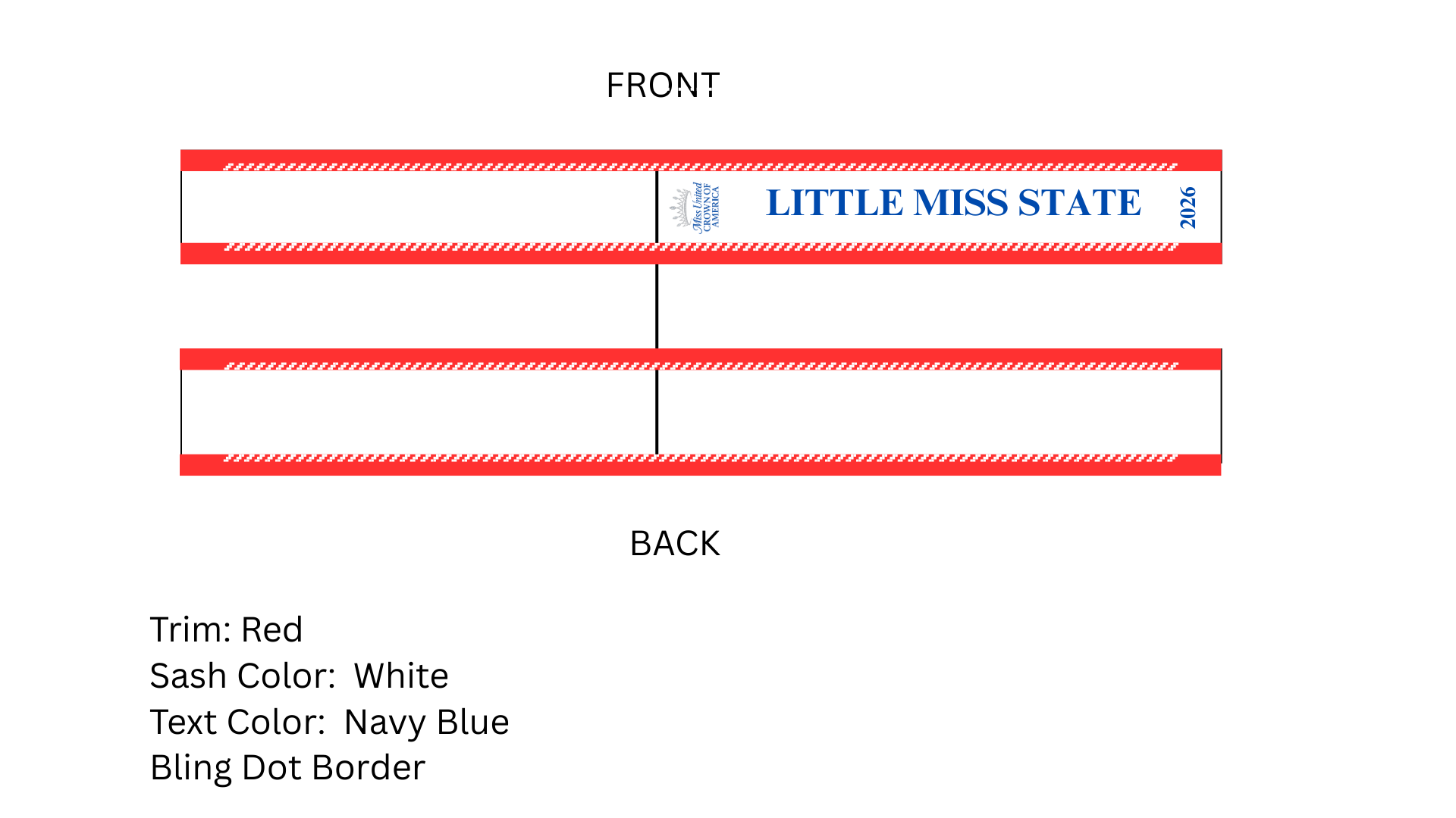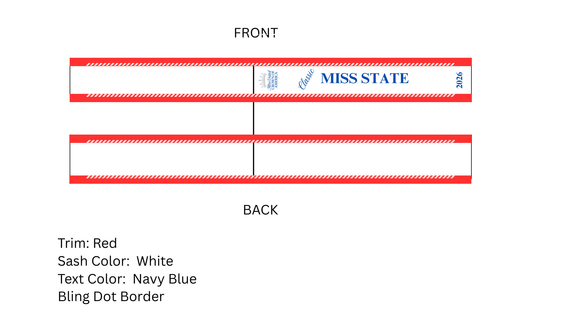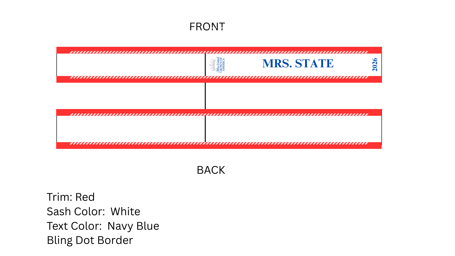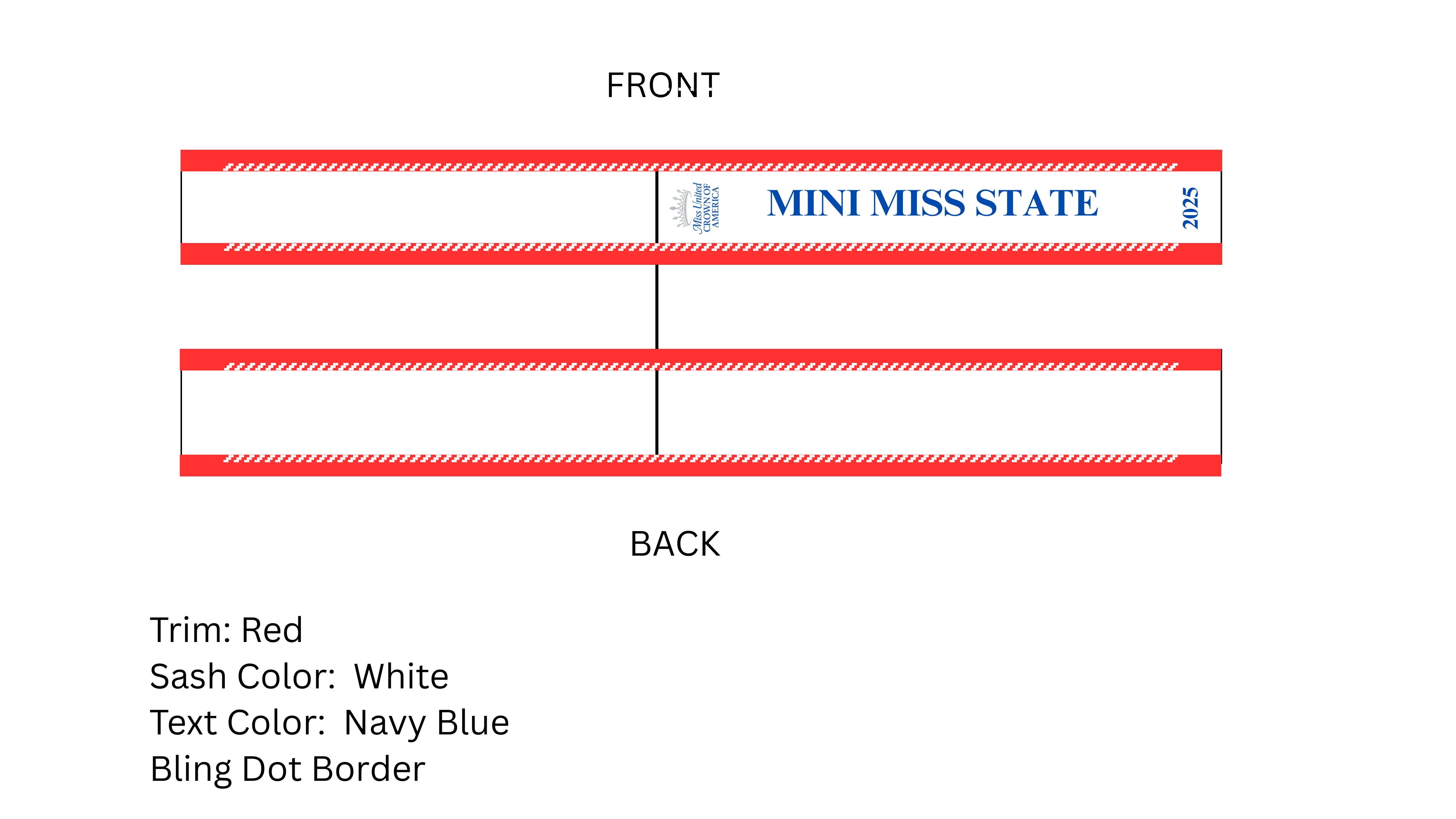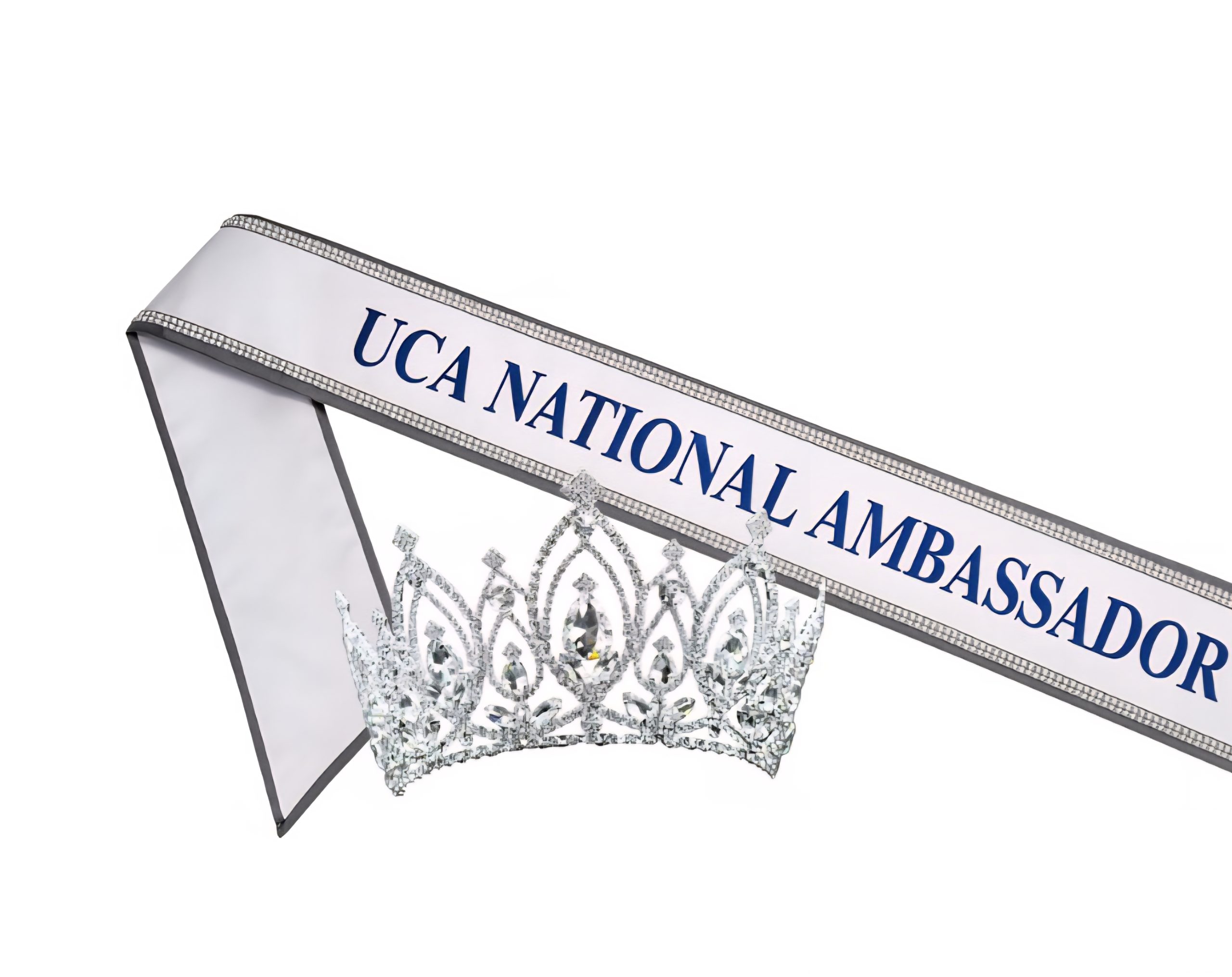 UCA Limelight Pageant Sashes come with the UCA crown and logo on the shoulder. Sashes will be white with red border and Navy Blue embroidery. We think adding Silver Bing Dots around the border will add that extra flare putting you in the limelight!